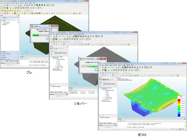土木・建設分野を中心に日本でも数多くの使用実績があり、特に、コンクリートのひび割れ進展解析、鋼構造物の弾塑性有限変位解析、地盤の段階施工解析など非線形解析において高い評価をいただいております。