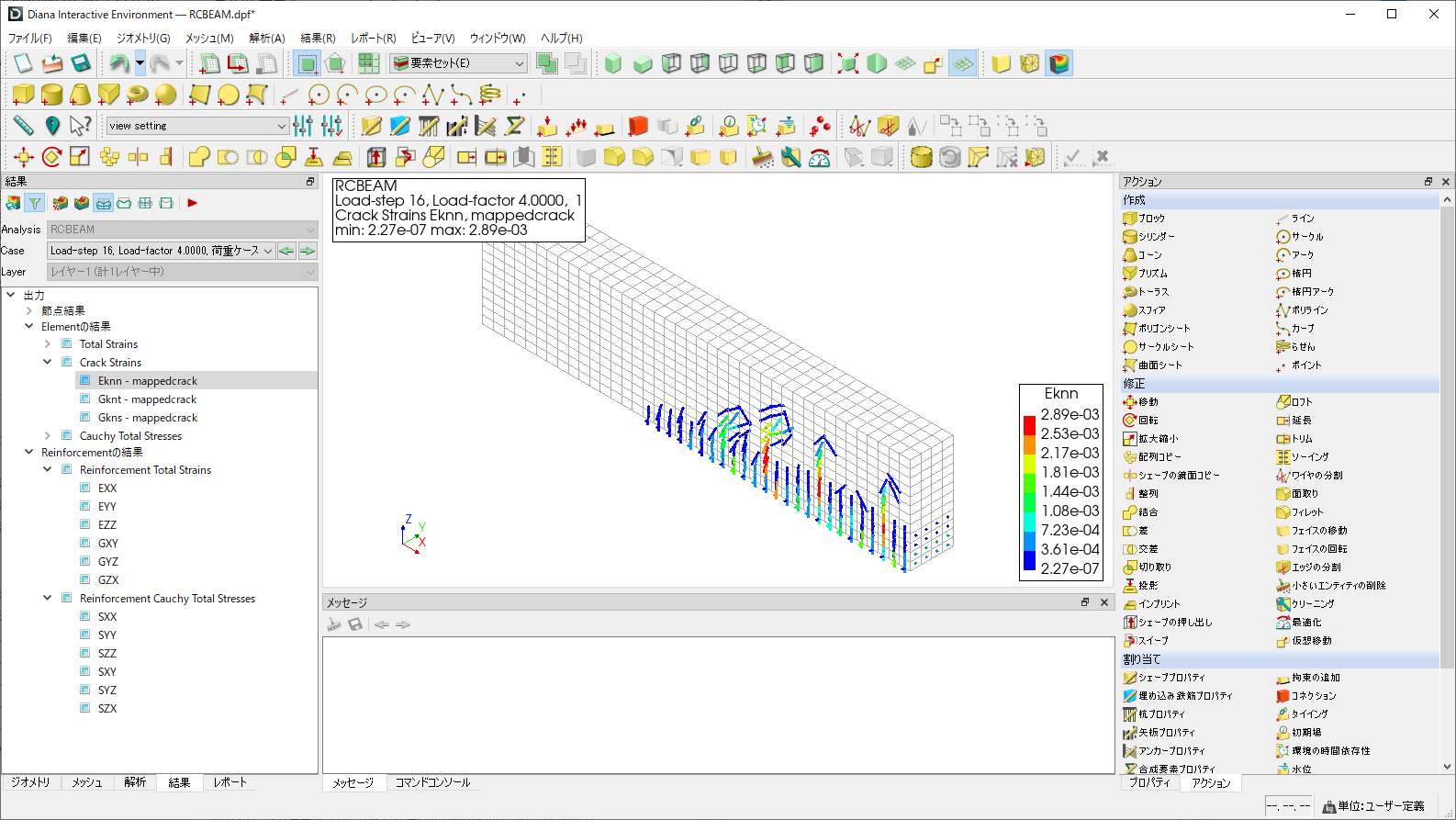 ひび割れ解析機能の説明と入力方法、離散鉄筋と分散鉄筋のモデル化方法、2022年制定 コンクリート標準示方書 [設計編](公益社団法人土木学会)に記載の損傷指標の出力方法を含んだ以下の内容を予定しております。なお例題演習では、材料特性の入力、出力の設定、結果の処理のみを行います。