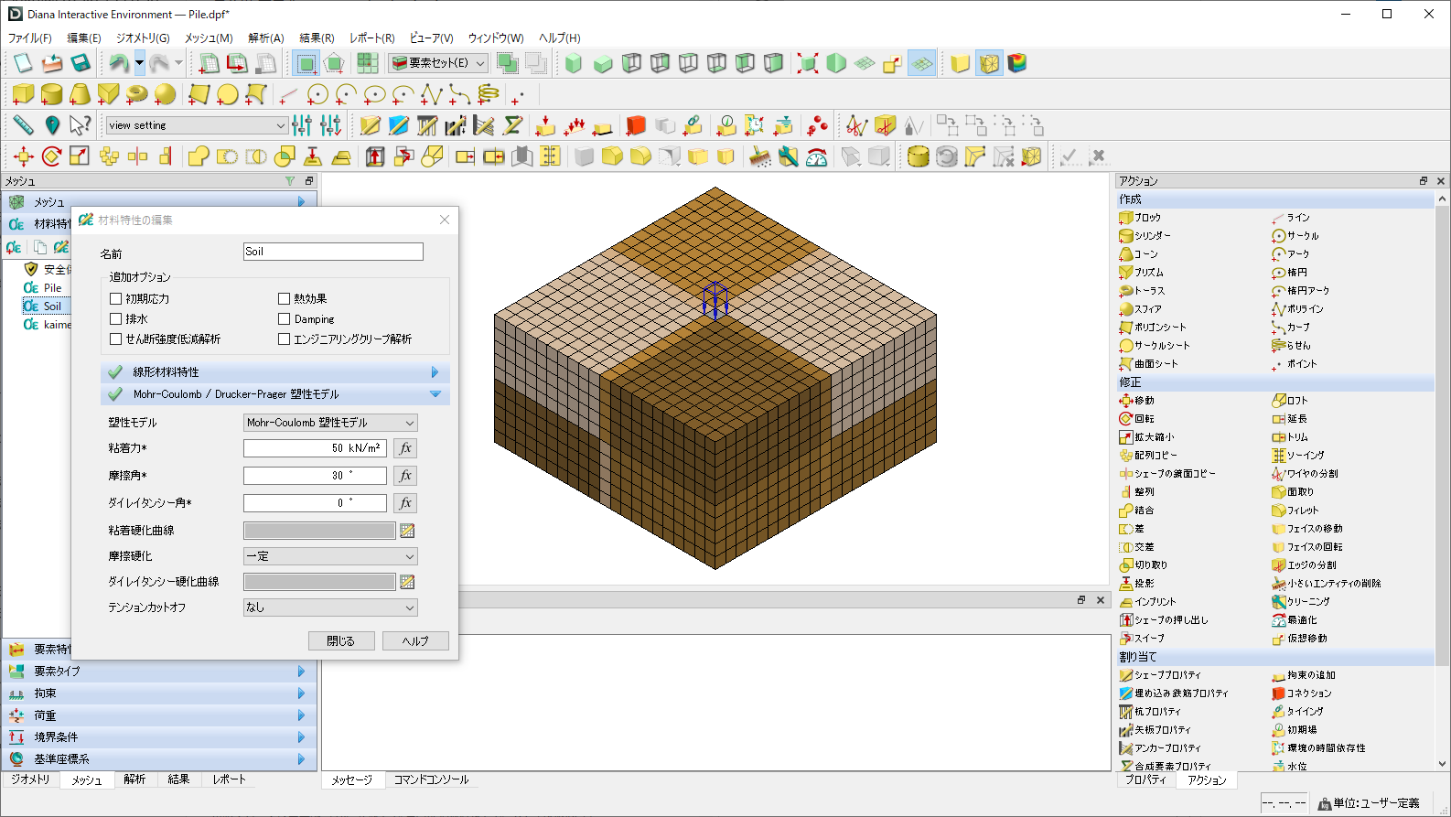 非線形解析に必要なプリポストの操作方法、インターフェイス要素の設定方法、また収束計算の設定方法を含んだ以下の内容を予定しております。