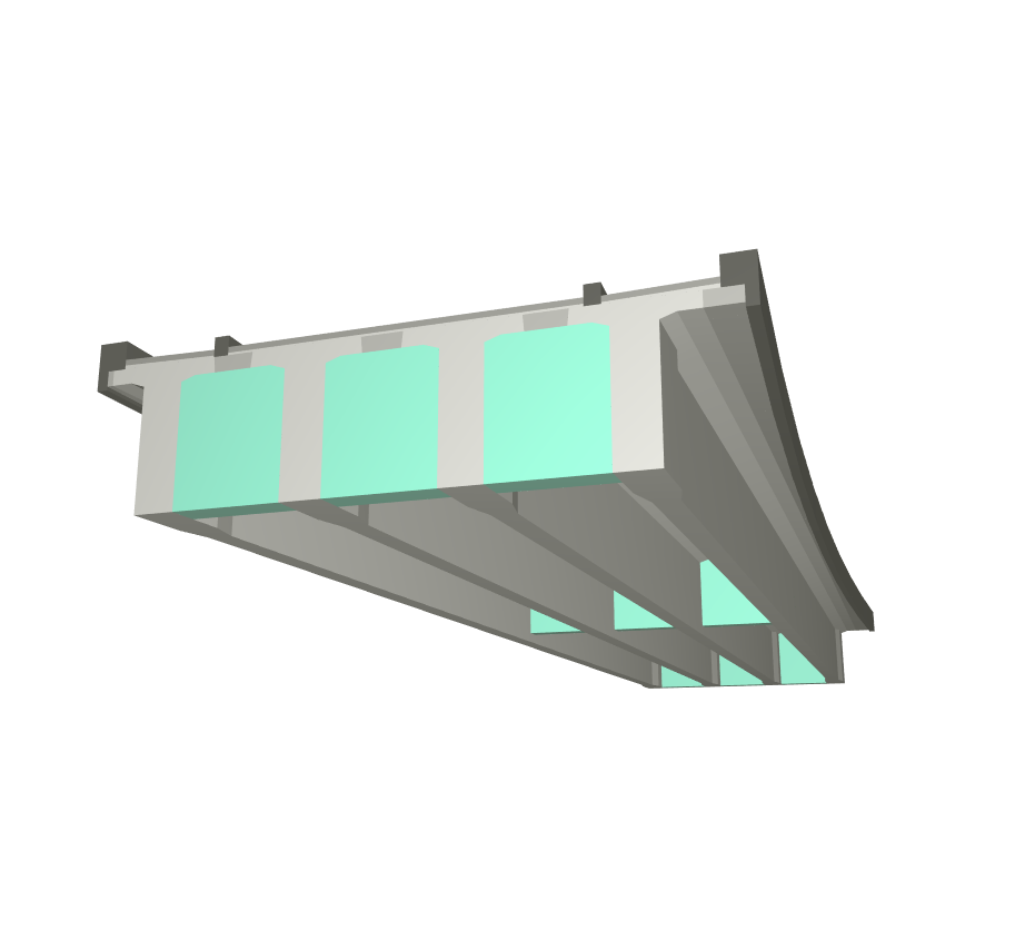 直感的な操作性と豊富なデータの入力サポート機能を持ち、コンクリート橋の上部工BIM/CIMモデルを効率よく自動生成できます。弊社、PC桁橋設計システム※との連動も可能で、最小限の入力でモデル化できます。