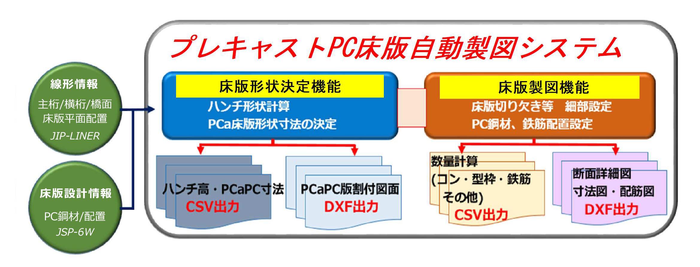 本製品は、「プレキャストPC床版」の設計業務の中で、手間と時間がかかる「プレキャストPC床版形状計算」と「プレキャストPC床版図面の作成」の自動化を実現しており、生産性の向上を図ることが可能です。