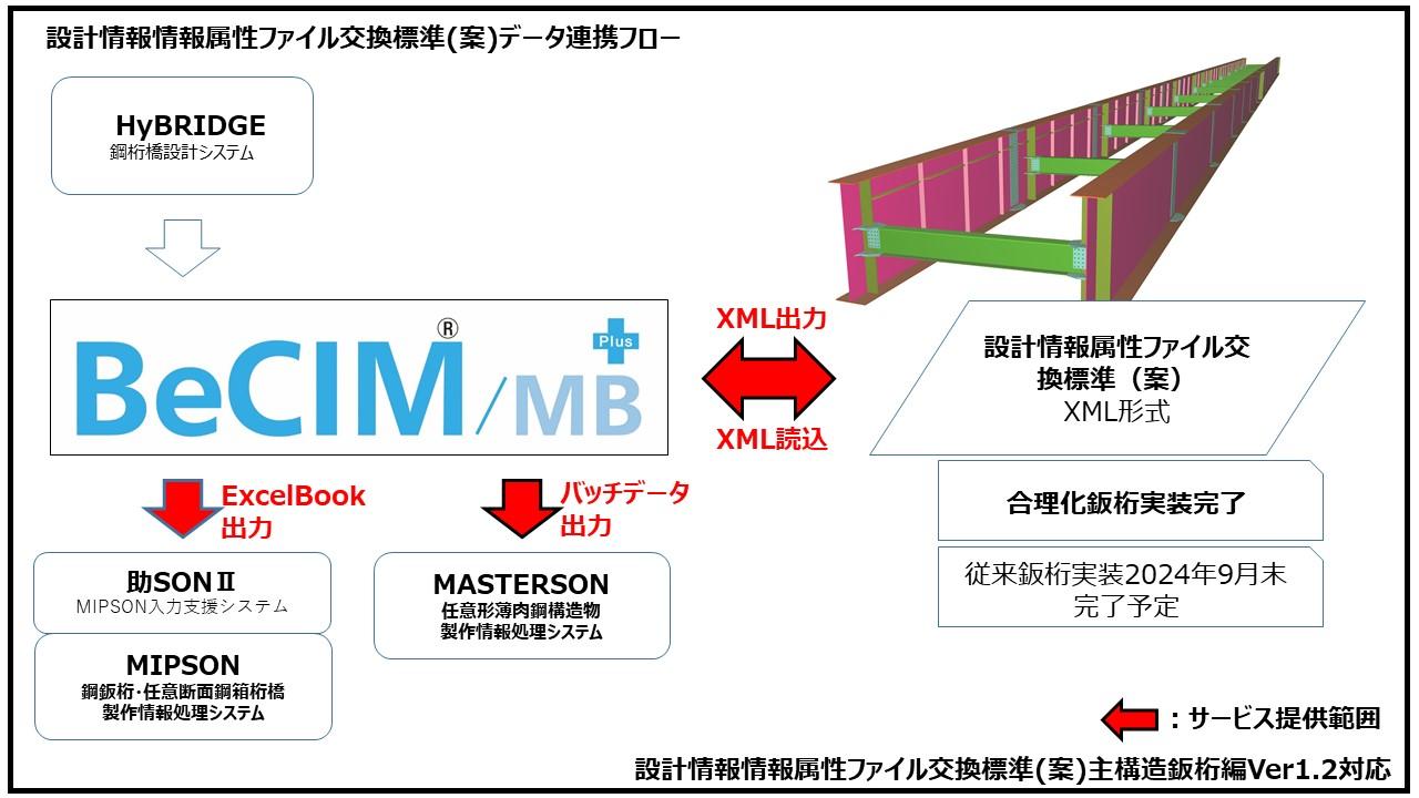 2023年4月18日、「橋梁技術のデータ連携実装に向けた共同宣言」が国土交通省の立会いのもと一般社団法人建設コンサルタンツ協会、一般社団法人日本橋梁建設協会との間で宣言されました。このデータ連携に関連して一般社団法人日本橋梁建設協会から公開されている「設計情報属性ファイル交換標準(案)」読込機能、出力機能を搭載したシステムの実装開発を進めています。