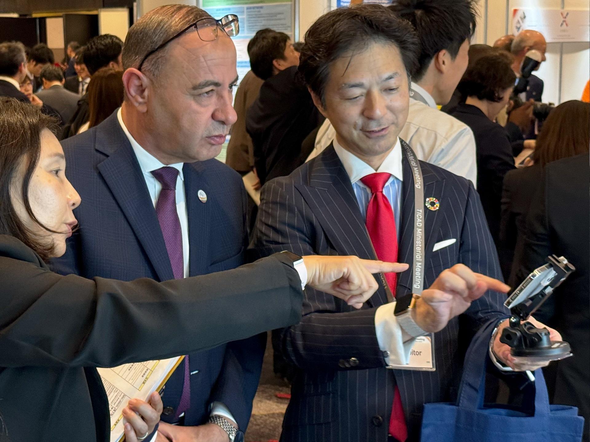 2024年8月24日から25日までの2日間、アフリカ開発会議(TICAD)閣僚会合が東京にて開催され、24日夜には上川陽子外務大臣主催による歓迎レセプションが行われました。会場では、官公庁や地方自治体、民間企業などによるブース展示が行われ、アフリカの持続可能な発展に貢献する多岐にわたる分野での最新技術や日本の伝統的技術が披露されました。当社はここで、道路維持管理向け製品「DRIMS®」を展示しました。