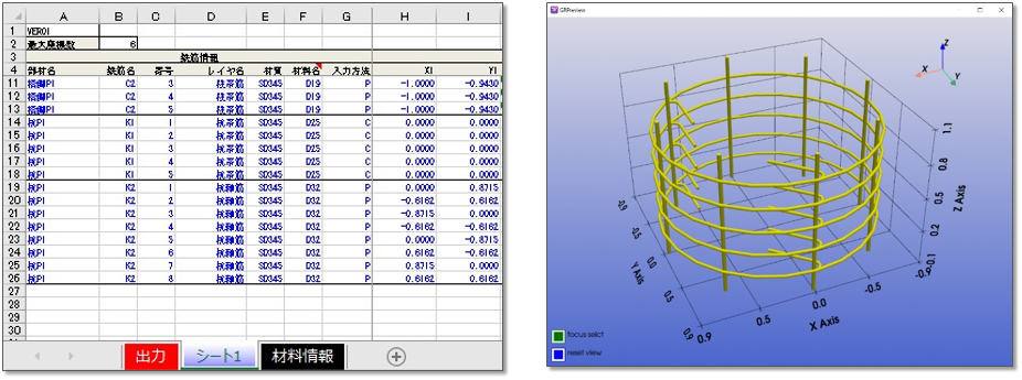 - Excel表計算を基に鉄筋形状や配筋モデルを作成できます。