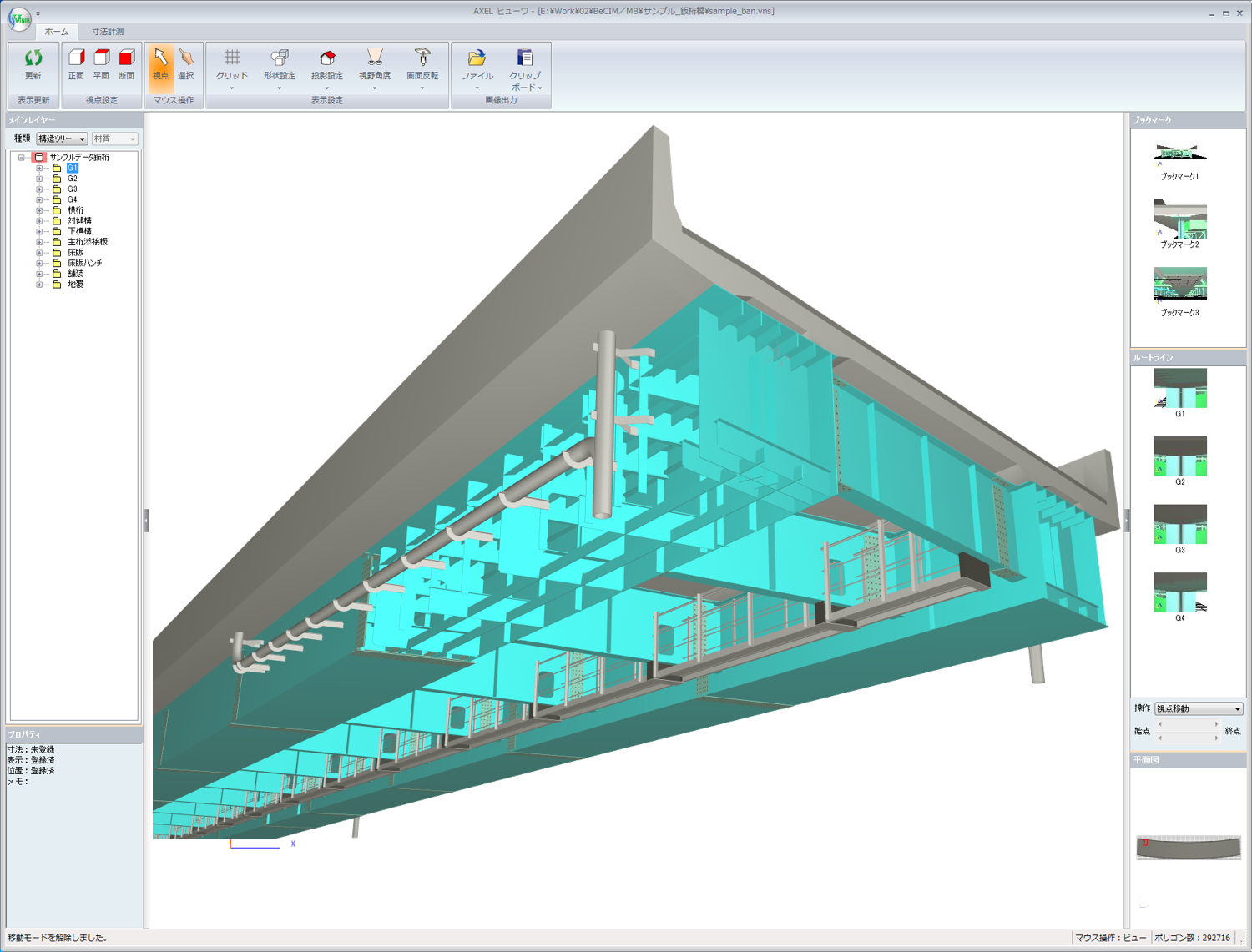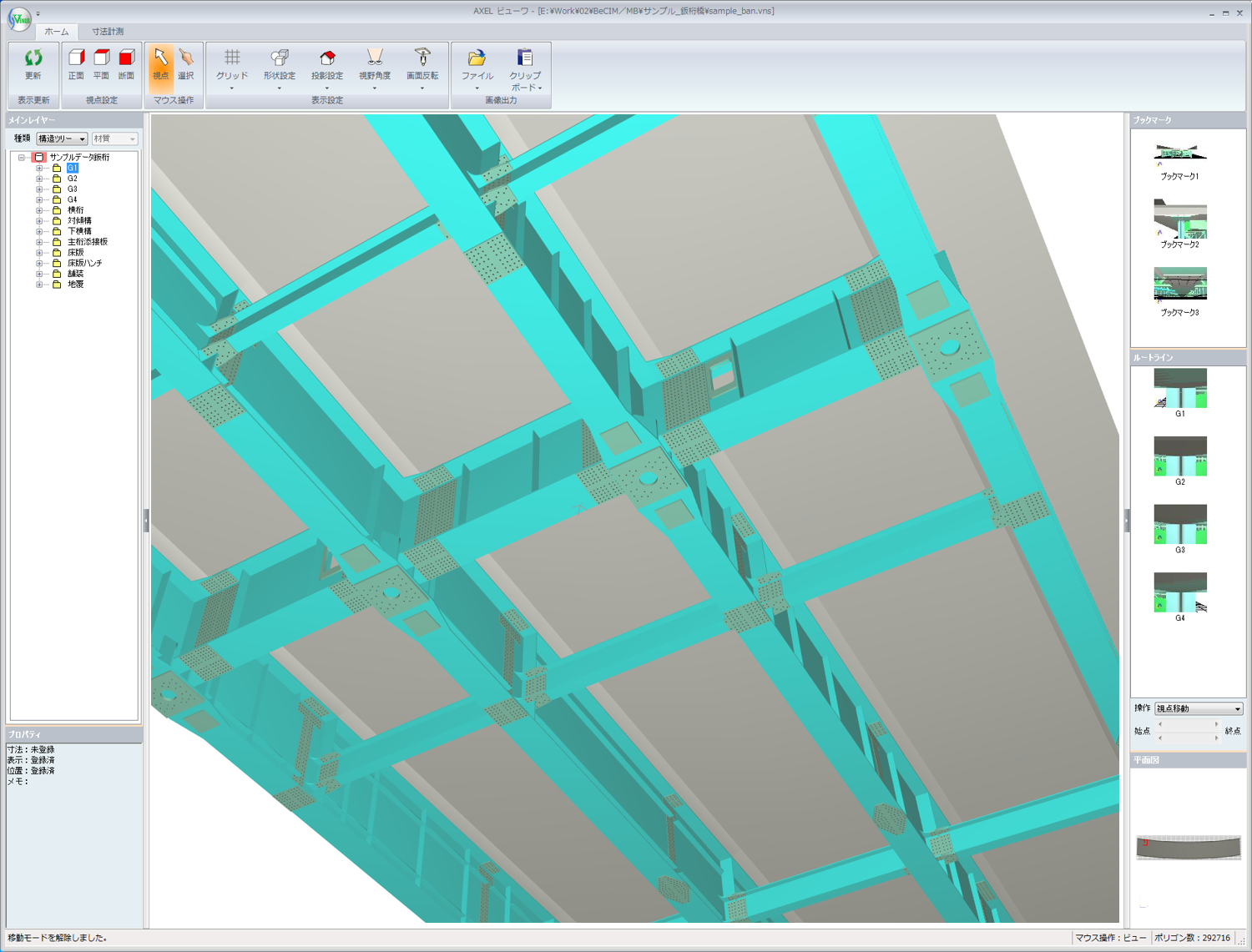 - 視点、寸法、部材表示状態等をブックマークに登録し保存できます。