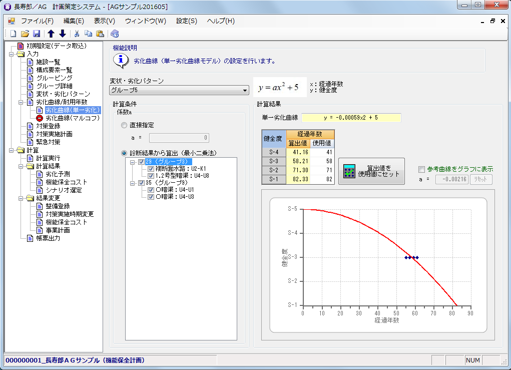 • 施設毎、グループ毎に劣化曲線の計算結果を表示できます。