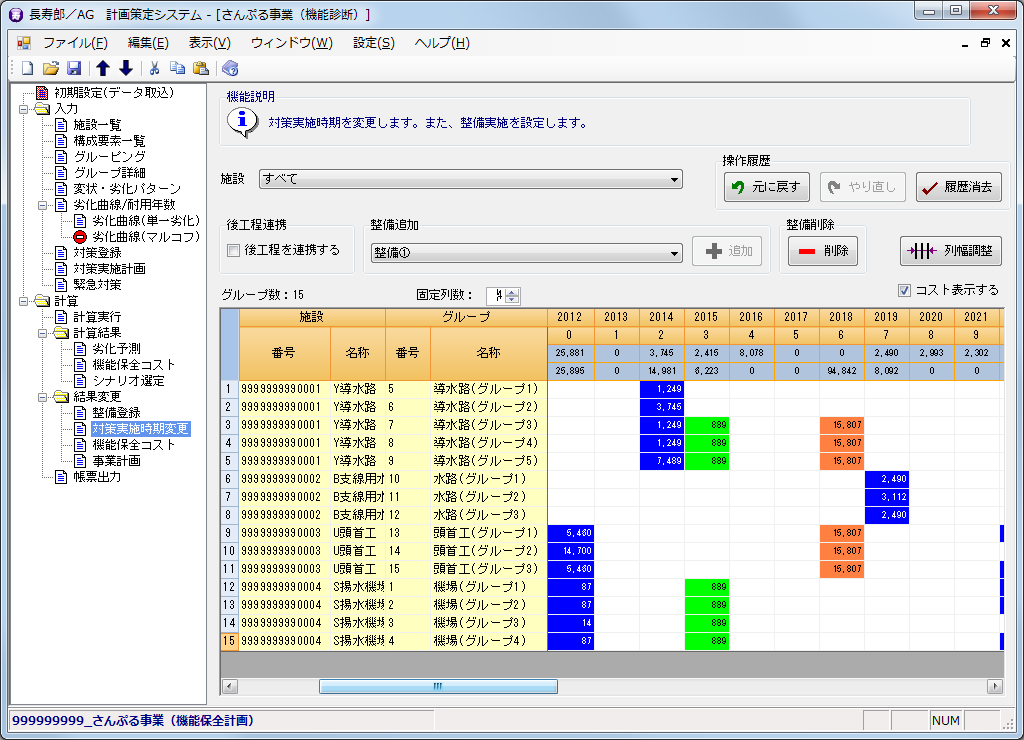 • 対策実施時期の変更機能により、対策実施の同期化や、予算の平準化が容易に行えます。
