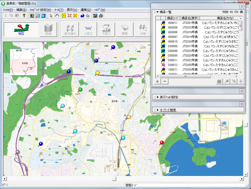 橋梁諸元、各種履歴、関連ファイル管理が可能