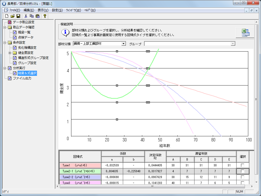 - あらかじめ設定した劣化曲線と対策費用を基にLCC計算、予算シミュレーションが可能です。