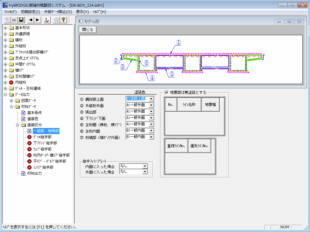 • 初期設定された塗装色の塗り区分を設定することで材料計算用のデータ生成が容易に行えます。