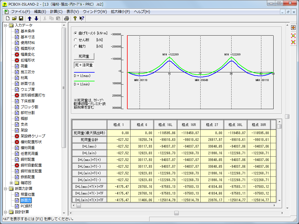 • 主要断面の計算結果をまとめた断面総括表の出力が可能です。