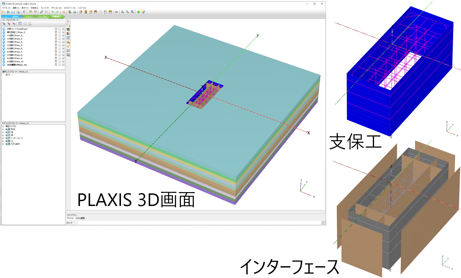 - 掘削深さの入力で、段階施工のシーケンスを自動設定