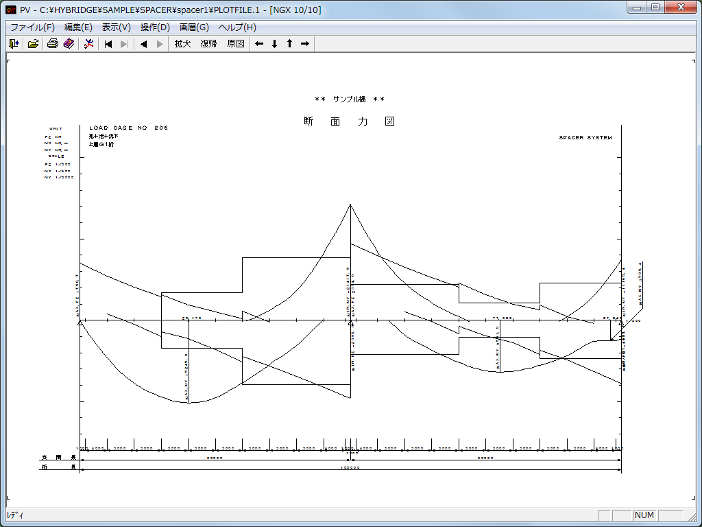 断面力図、形状図、変形図、影響線図などをDXFファイルに出力が可能です。
