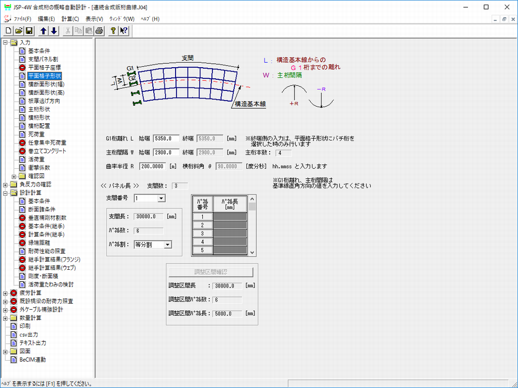 • 直線桁、曲線桁に加えて、斜角付き桁、バチ桁、および座標入力による任意形に対応しています。