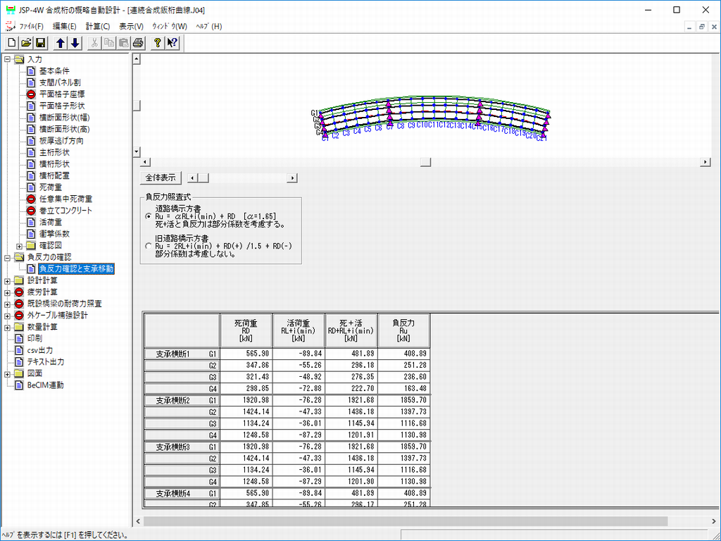 • 負反力照査式を切り替えて、負反力が確認できます。