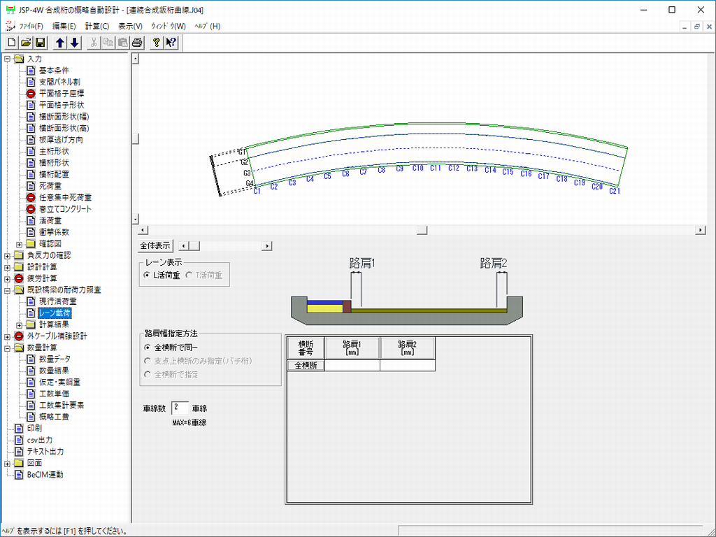 • 単純合成鈑桁および単純合成箱桁の概略設計(断面力算出、耐荷性能照査、疲労照査、数量計算、工数積算)を一貫して行えます。