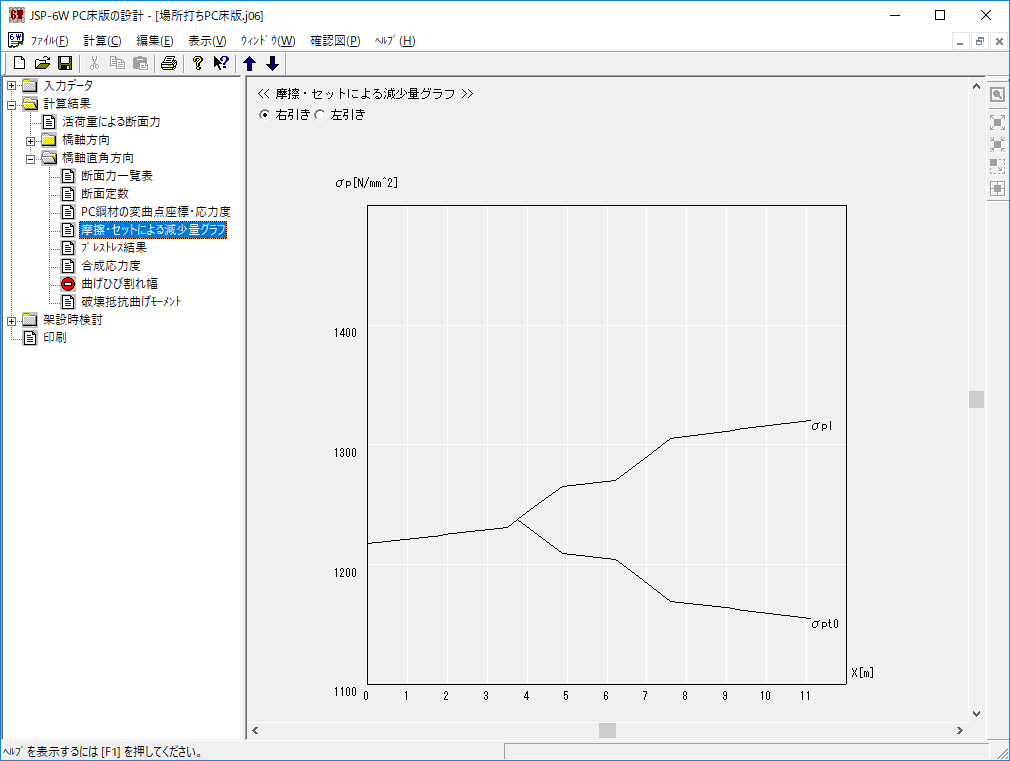 • PC鋼材応力度の摩擦およびセットによる減少量が図で確認でき、帳票出力にも対応しています。