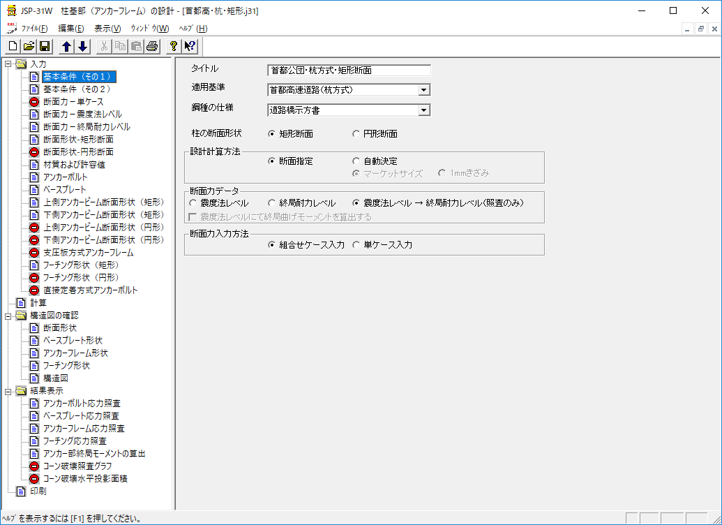 - 任意形立体骨組の断面力解析システム(JIP-SPACER)から出力された断面力ファイルを読み込んで断面計算が行えます。