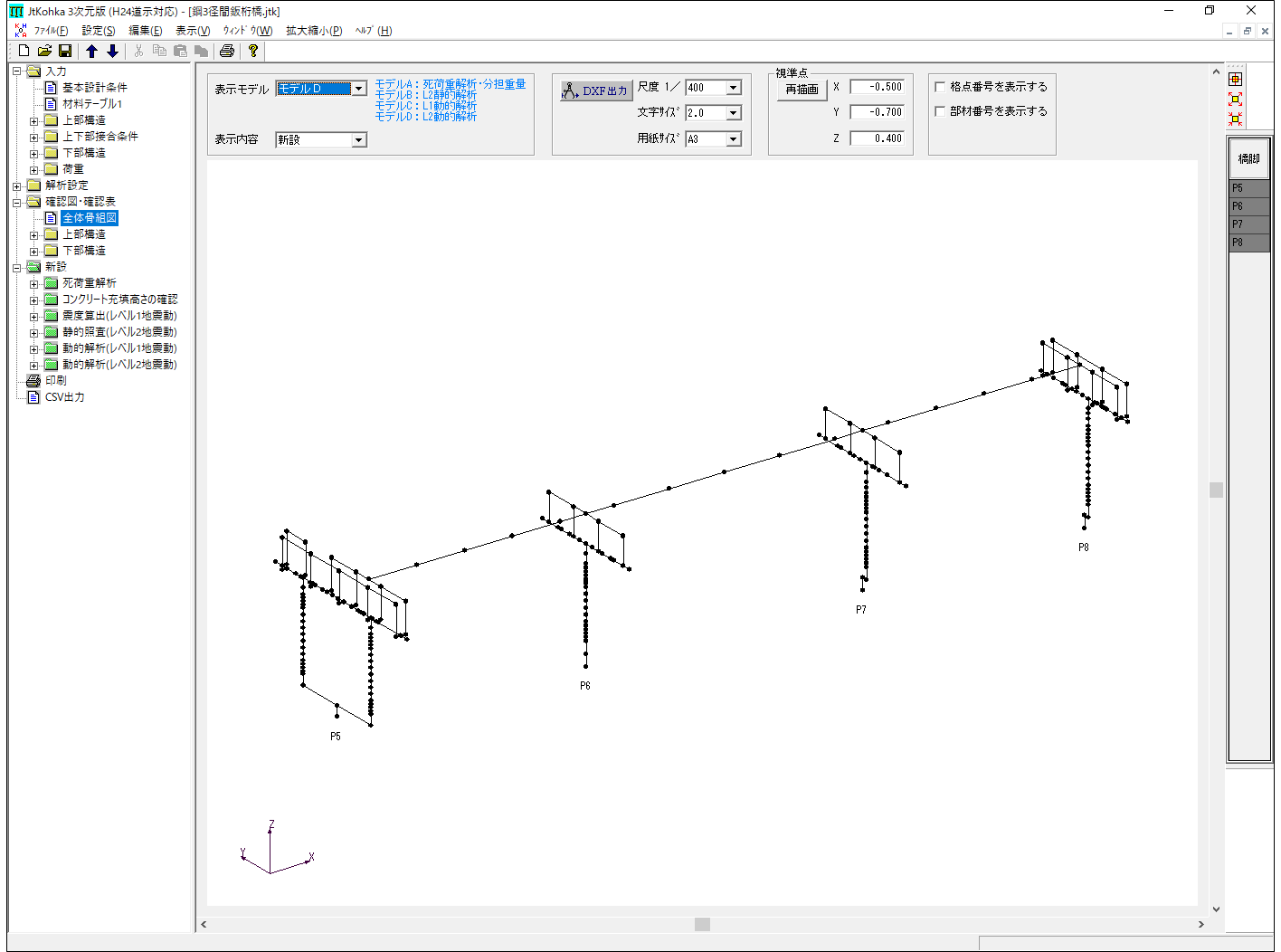 - 連続高架橋の初期断面力算出、静的照査、動的照査、報告書作成までを一貫して行えます。