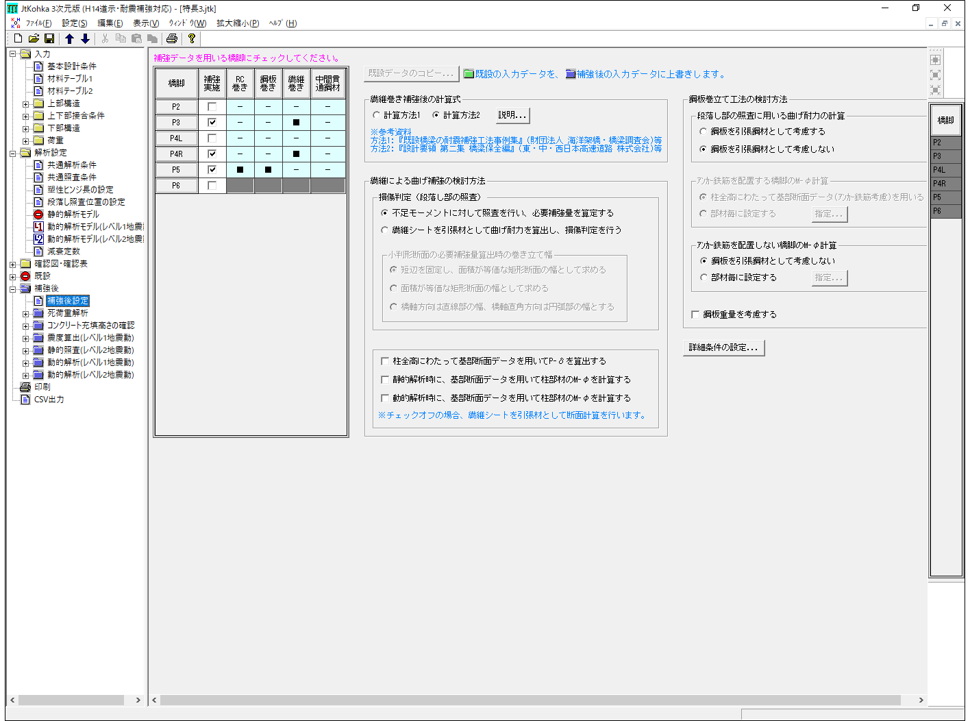 - 既設時および補強後の検討を一度に行うことができます。