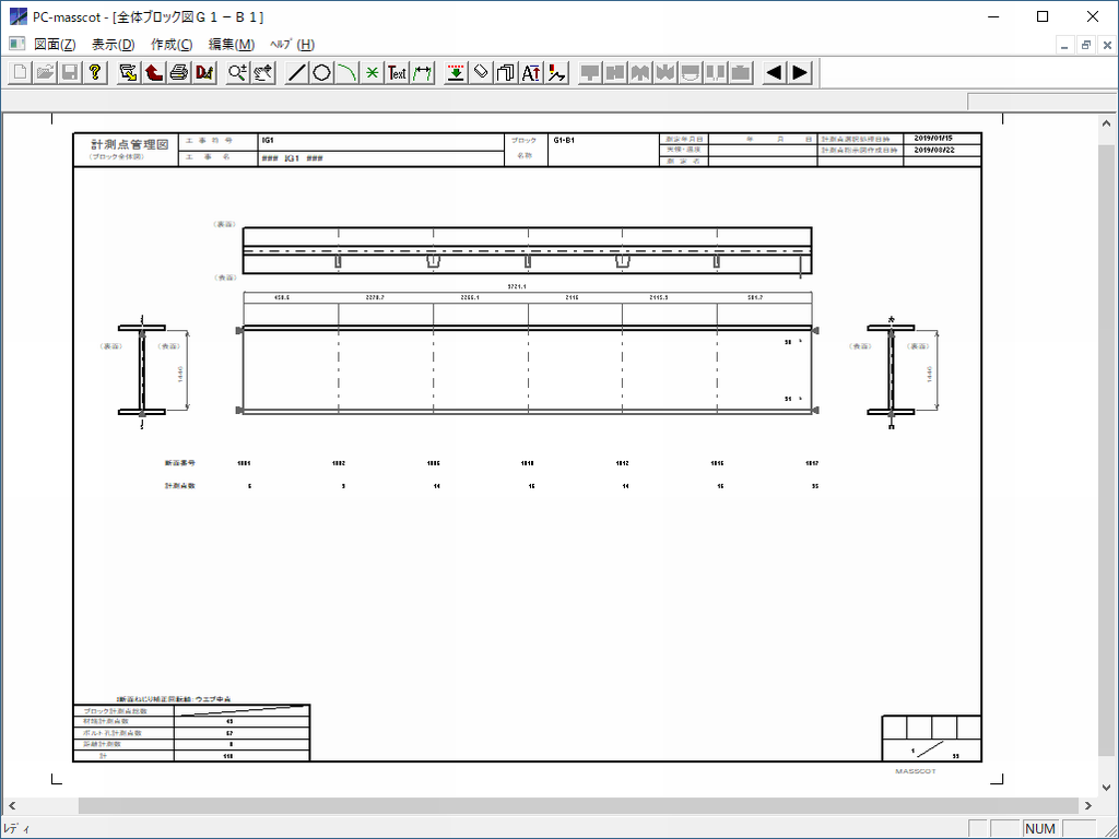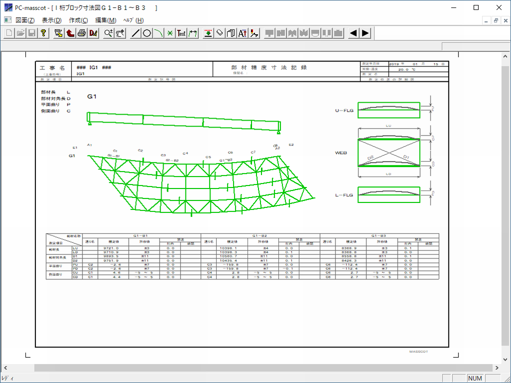 鋼鈑桁・任意断面鋼箱桁橋製作情報処理システム(MIPSON)、任意形薄肉鋼構造物製作情報処理システム(MASTERSON)とデータ連携した各種の計測管理ができます。