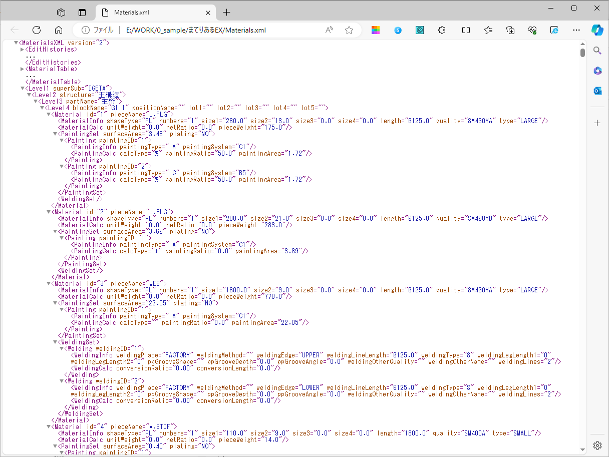 - 一般社団法人日本橋梁建設協会より公開されている設計情報属性ファイル交換標準(案)数量編 Ver1.0に沿った読み込み、出力ができます。