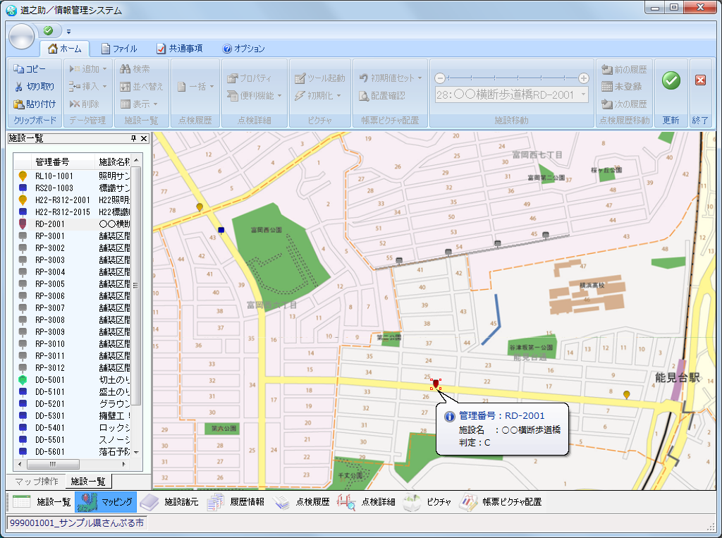 道路施設台帳として複数施設の情報を一元管理