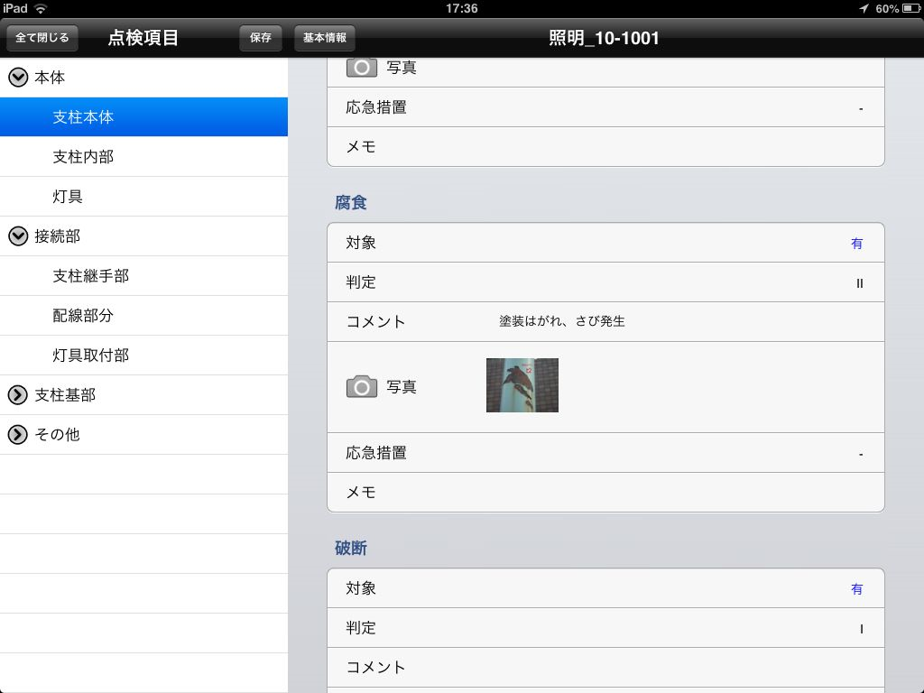 • 総点検業務、定期点検業務における点検結果・写真の入力、管理を効率的に行うことができます。