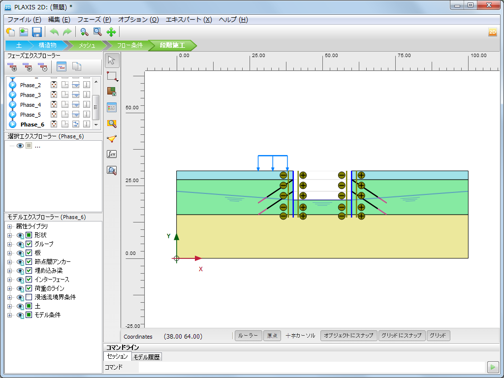 - 梁、杭、アンカー、トンネル、ジオグリッド、ドレーン等の専用要素があります。