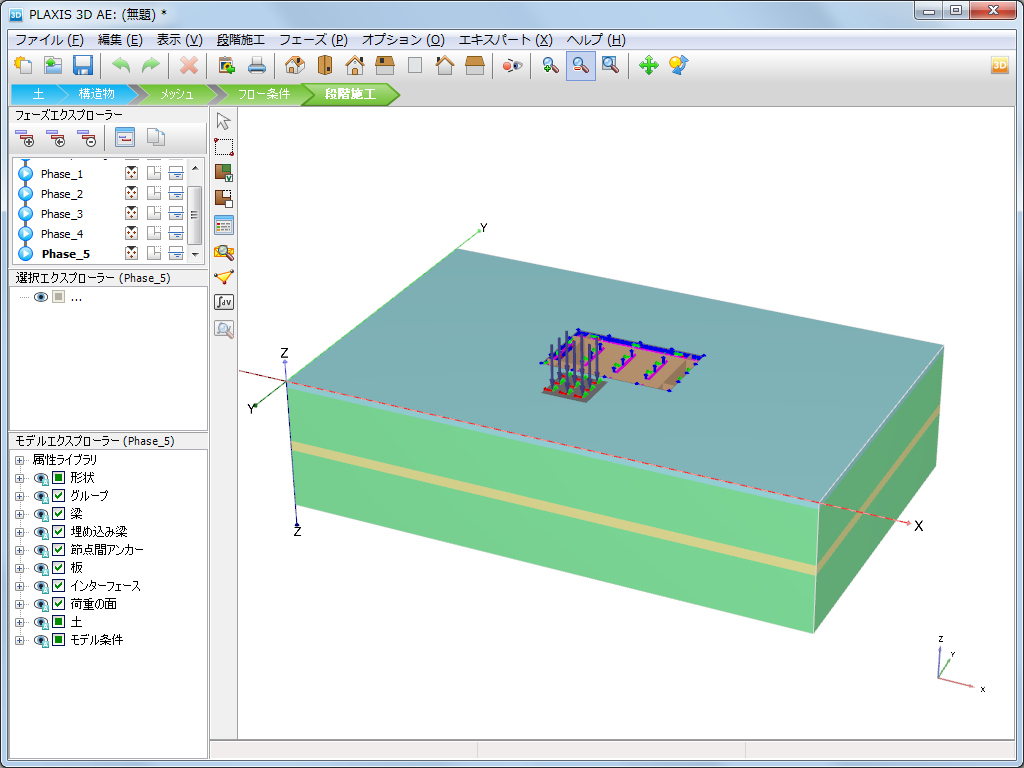 - 梁、シェル、杭、アンカー、トンネル、ジオグリッド、ドレーン等の専用要素があります。