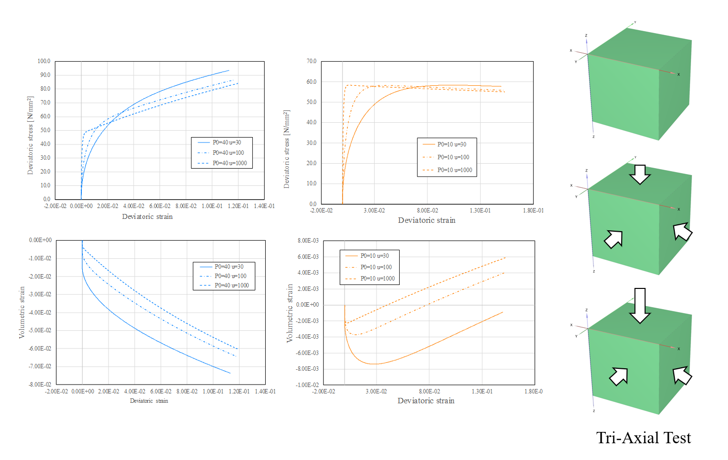 九州大学名誉教授 橋口公一先生が提唱する「土の下負荷面モデル」をPLAXISのユーザーサブルーチンHSLSモデル(Hashiguchi Sub Loading Soil)として開発しました。HSLSモデルは、弾性変形から塑性変形への滑らかな遷移と軟化挙動、繰り返し作用によって生じる塑性変形の集積が表現できる画期的なモデルです。