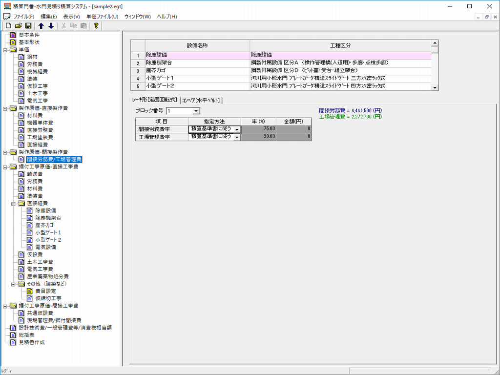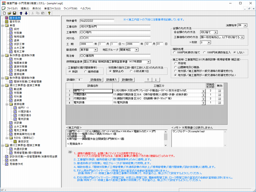 • 水門設備を中心として複数の工種区分に対応し、本ソフトウェア1本でほとんどの水門の見積り積算が可能です。