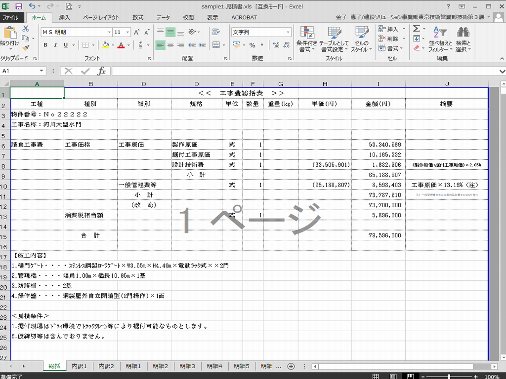 • 計算結果はExcelファイルへ出力され、積算書の他に調査基準価格表が作成できます。