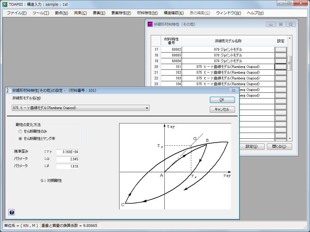 • 地盤分野におけるRamberg-OsgoodやHardin-Drnevichモデル、橋梁分野における高減衰積層ゴムモデルや鉛入り積層ゴムモデルなど実績のある構成則を実装しています。