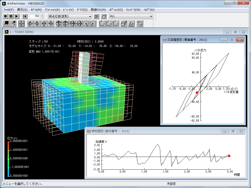 TDAPⅢ/FDAPⅢは、土木・建築向け汎用3次元動的解析プログラムです。土木・建築分野に特化した要素群、材料非線形モデルを数多く実装しています。2次元、3次元、軸対称モデル、骨組みやシェルなどの構造要素、各種境界を含む地盤要素、液体要素などを幅広くサポートしており、モデル化に関する高い汎用性があります。