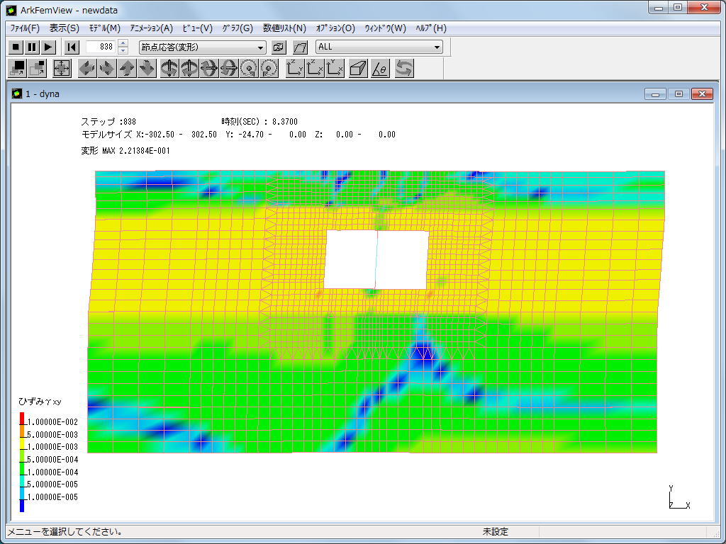 • オプションプログラムの「ArkFemView」では、アニメーションで解析結果を確認することができます。また、コンター図を画像ファイルや動画ファイルに出力することもできます。