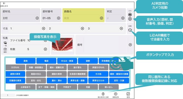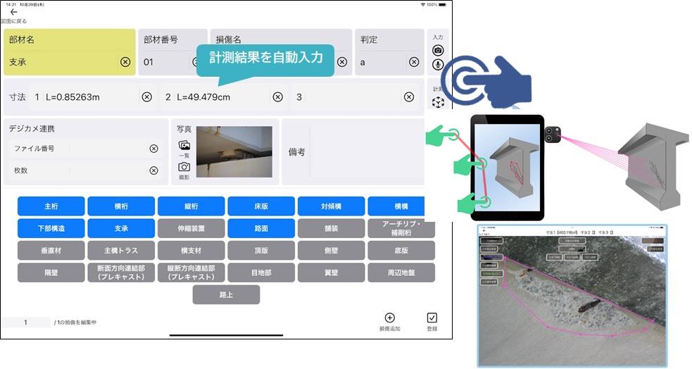 点助は、橋梁点検現場における種々の作業を効率化できるタブレット版アプリです。