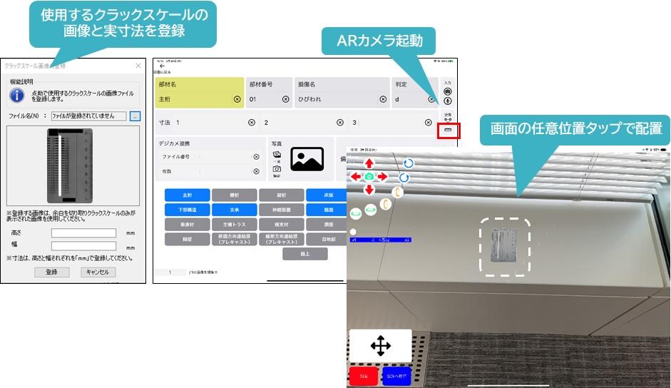 AR機能を用いてクラックスケール画像をAR空間上に表示できます。