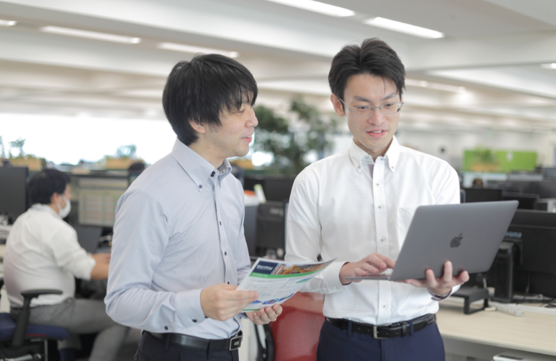 会議直前のプレゼン指導。頼りになる先輩社員がたくさんいます。