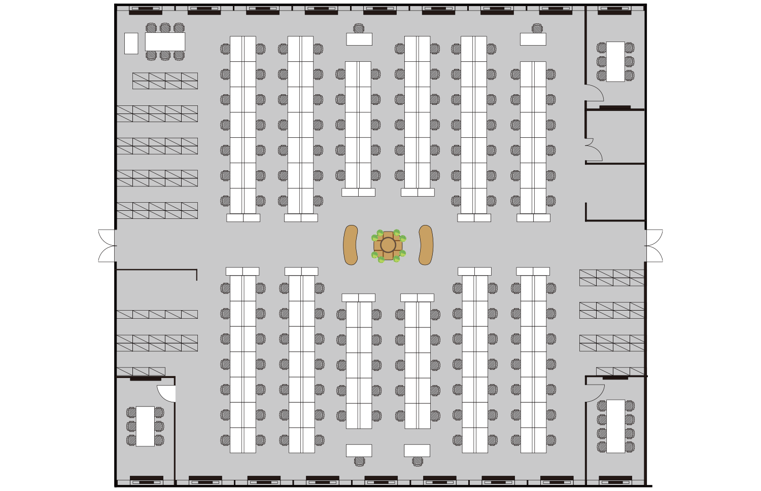 フロア中央はライブラリーエリア。最新の業界紙、専門誌が並んでいます。