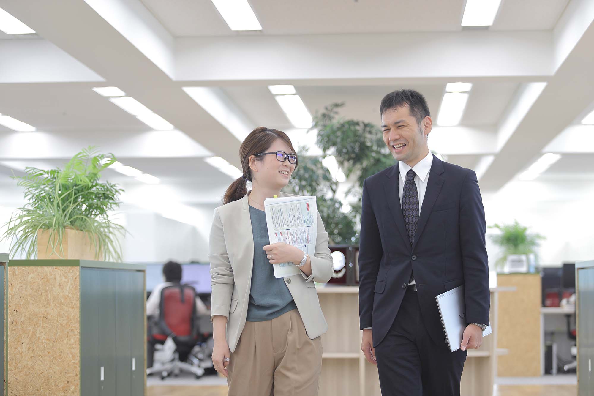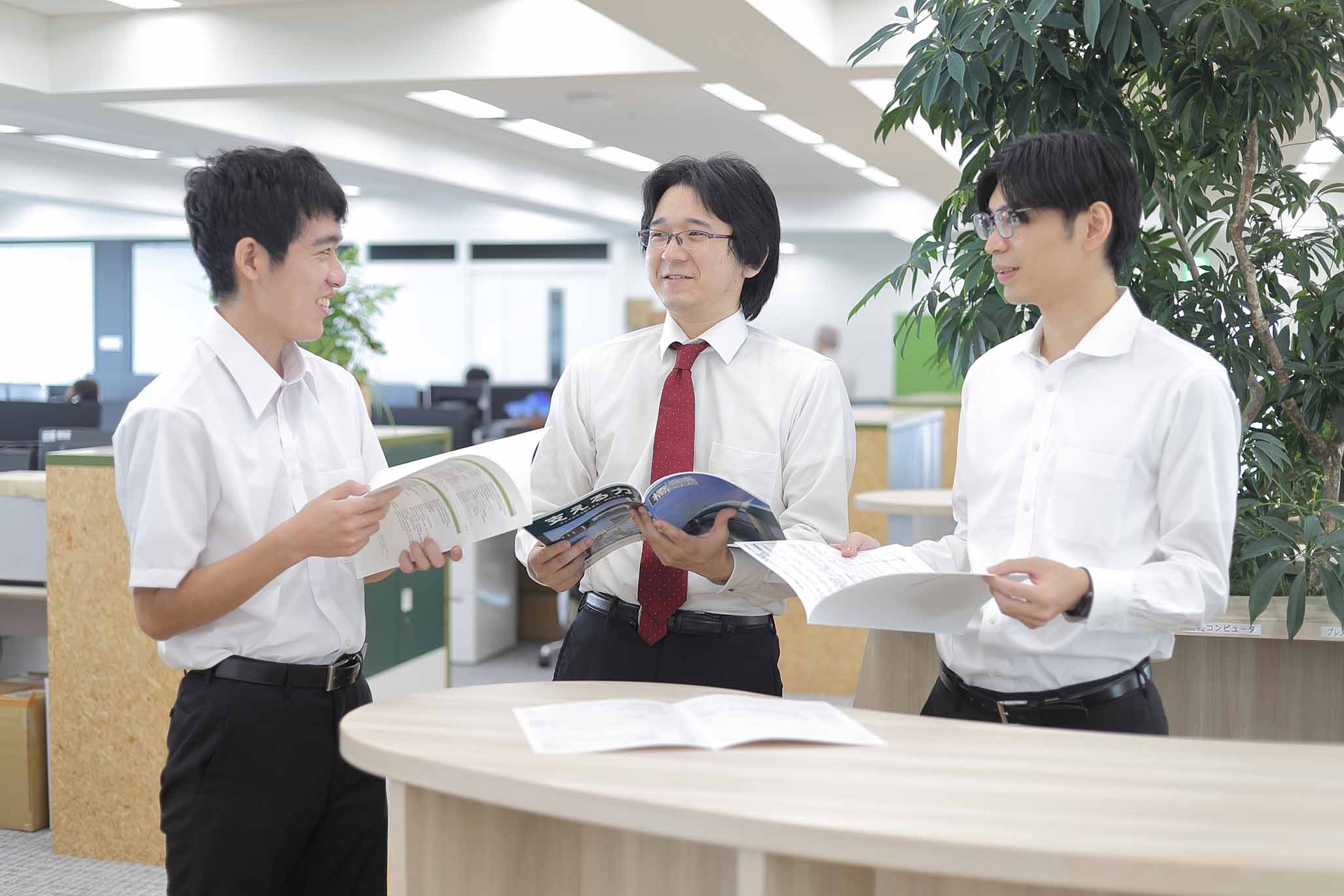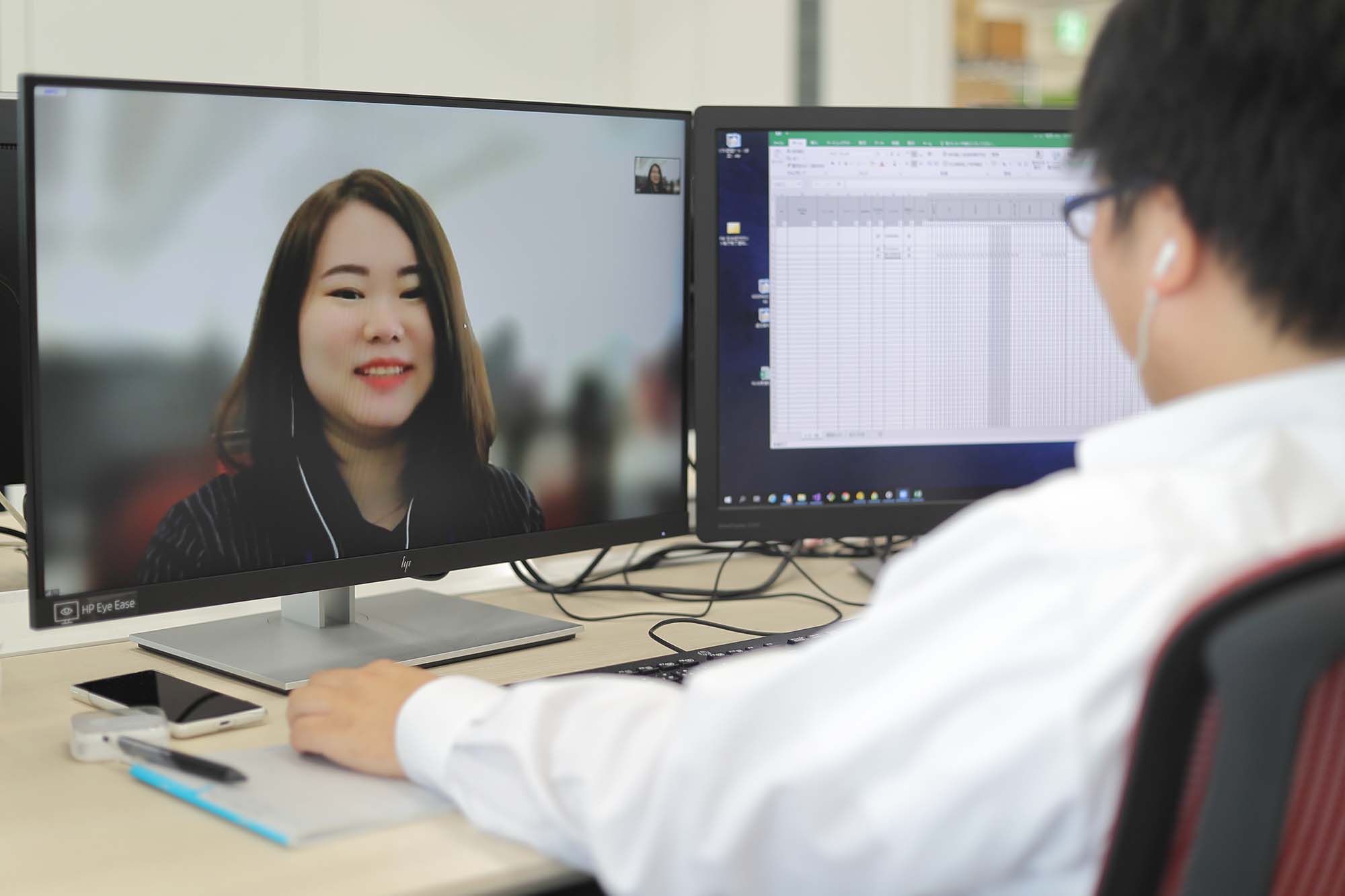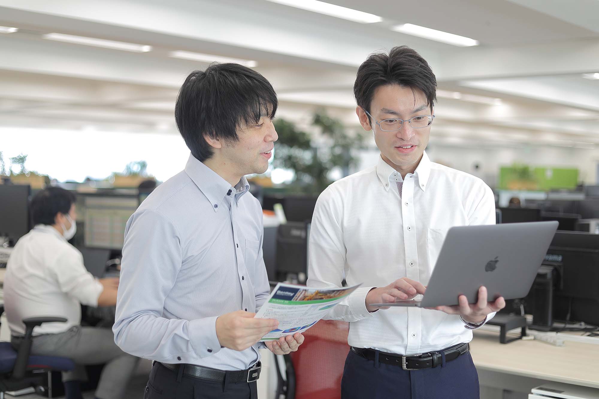 会議直前のプレゼン指導。頼りになる先輩社員がたくさんいます。
